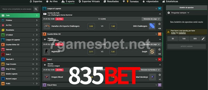 A aposta 835bet oferece aos jogadores a experiência mais conveniente de apostas em eSports!